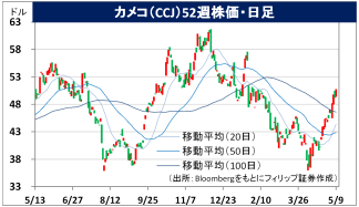 - 通期会社計画は、売上高が前期比5-13%増の33.0-35.5億USD、ウエスチングハウス関連の調整後EBITDAが同16-27%減の3.55-4.05億USD。ウラン生産量が4%減、ウラン平均実現価格が5%上昇と従来計画を据え置いた。トランプ大統領が5/7、原子力規制委員会(NRC)からのライセンス取得の遅延を回避する措置を講じるなど原発開発迅速化のための大統領令を発令する意向と報道された。