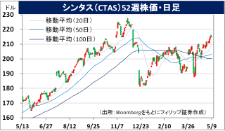 - 通期会社計画を上方修正。既存事業売上高伸び率を前期比7.4-7.7%(従来計画7.0-7.7%)、EPSを同15-16%増の4.36-4.40USD(同4.28-4.34USD)とした。同社は北米で企業制服のシェアが高く価格競争力があるほか、在庫管理や運転経路の最適化で利益率が改善。人手不足により業務の外部委託が増加し、業績拡大につながっている。3/14支払いの四半期配当は前年同期比14.9%増。