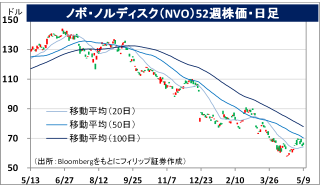 - 通期会社計画(為替変動の影響を除く)を下方修正。売上高成長率を前期比13-21%(従来計画16-24%)、営業利益成長率を同16-24%(同19-27%)とした。米国でGLP-1向けのブランド普及の遅れが業績に響いた。肥満症向けGLP-1受容体薬の開発で経口薬が次の焦点となる中、競合する米イーライリリィ(LLY)との比較で技術力は劣らないとみられる一方、時価総額は両社の差が拡大。