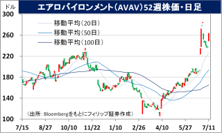 - 2026/4通期会社計画は、防衛テクノロジー企業のBlueHaloの買収が5/1に完了したことを受けて、売上高が前期比2.3-2.4倍の19-20億USD、調整後EPSが同9-15%減の2.80-3.00USD。買収関連費用により減益を見込む。ヘグセス米国防長官が7/11、ドローンの生産と配備を加速させる命令を発令。命令の内容は、全軍に対しドローンを用いた戦闘シミュレーションの実施の義務化などを含む。