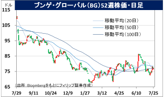- 通期会社計画は、調整後EPSが前期比15.7%減の7.75USDと従来計画を据え置いた。同社は7/2、スイス資源大手グレンコア傘下でカナダ最大の穀物商社バイテラの買収(82億USD)を完了。国際的な農業分野におけるM&Aとして過去最大級で、注目を集めた。トランプ関税の合意で米国からの農産物輸入拡大を約束する国が相次ぐ中、グローバル流通網の拡充は国際競争力を高めるだろう。