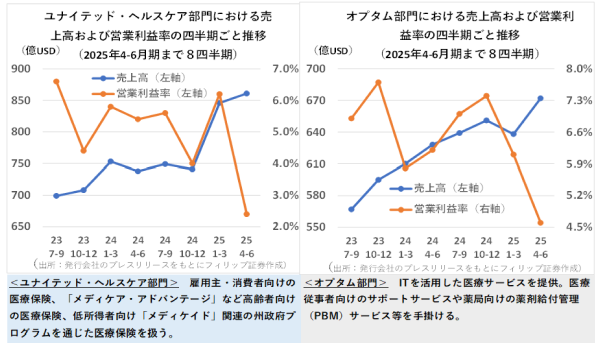株価下落要因としては、高齢者向け公的医療保険メディケアの不正請求疑惑に関する刑事捜査が行われていると報じられたことに加え、同社が強みを持つメディケア・アドバンテージ(MA)事業で医療費率上昇に伴う業績悪化が挙げられる。さらにトランプ政権のヘルスケア政策も歳出削減や規制強化に重点が置かれ、同社に逆風だ。それでも、米ヘルスケア保険市場最大手の同社は、米国の高齢化に伴うメディケア加入者数増加の追い風が中長期的に見込まれる。