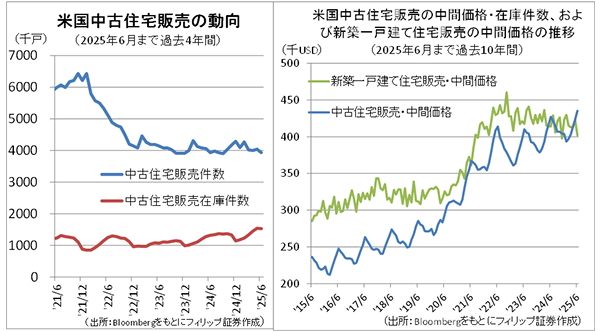 米中古住宅販売件数は価格が記録的水準にあり、借入コストも高い中、低迷が続いている。在庫は増えているものの、多くの住宅所有者は低金利で借り入れたローンを手放すことに消極的なこと、および過去数年にわたる供給不足などが住宅価格を押し上げている。