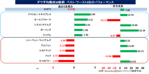S&P500業種別およびダウ平均構成銘柄騰落率(8/29現在)