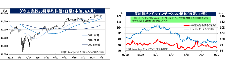 - 9/5発表の8月の米雇用統計が弱かったことを受けて、米国株式市場は投資資金が住宅・不動産事業関連や発電その他の公益事業関連、および借入コスト低下の恩恵を受けそうな中小型銘柄などへとシフトする展開が考えられる。その一方、同時に関税コスト上昇による企業の業績悪化、さらに関税コストを企業努力で吸収できなくなって消費者へ価格転嫁することで消費が落ち込み、景気の減速・後退へとつながることを警戒する動きが出てくることも想定される。