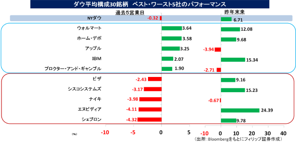 S&P500業種別およびダウ平均構成銘柄騰落率(9/5現在)