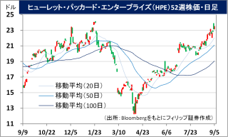 - 通期会社計画は、為替変動の影響を除く売上高が前期比7-9%増、調整後EPSが同5-11%減の1.78-1.90USDと従来計画を据え置いた。サーバーから顧客領域エッジ・コンピューティングまでカバーする定額課金サービス「HPE グリーンレイク・プラットフォーム」は、エヌビディア(NVDA)製の最新GPU搭載サーバーの供給制約問題が解消されつつあることから、利益率の改善が見込まれる。