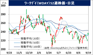 - 通期会社計画を上方修正。売上高を前期比14%増の88.15億USD(従来計画88.00億USD)、調整後営業利益率を同3.1ポイント上昇の29.0%(同28.5%)とした。「物言う株主」として知られる米ヘッジファンドのエリオット・インベストメント・マネジメントが9/17、同社への20億USD以上の出資を行ったことを明らかにした。エリオットは「大きな進展を遂げている」としてワークデイ経営陣を支持している。
