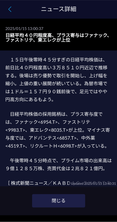 リアルタイムに市況・相場情報をお届け!市況やニュースなどリアルタイムで確認ができる市況、ニュースと豊富な情報をいつでもリアルタイムで確認できます。ニュースでは国内株式、金利/為替、アジア市況、米国市況、欧州市況、債券など豊富な情報を配信しています。