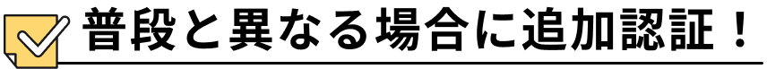 ご本人のアクセスであっても「普段と異なる」と判定された場合にのみ、追加の認証が求められるため、毎回認証する必要はありません。