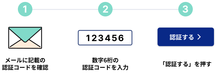 登録メールアドレス宛に認証コードを記載したメールが送られるので、その認証コードをWEBサイトの認証コード入力欄に入力することで認証が完了します。