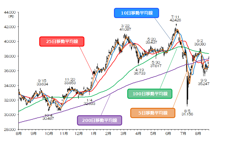 図表1:日経平均株価の日足チャート(2023/8/1-2024/9/20)