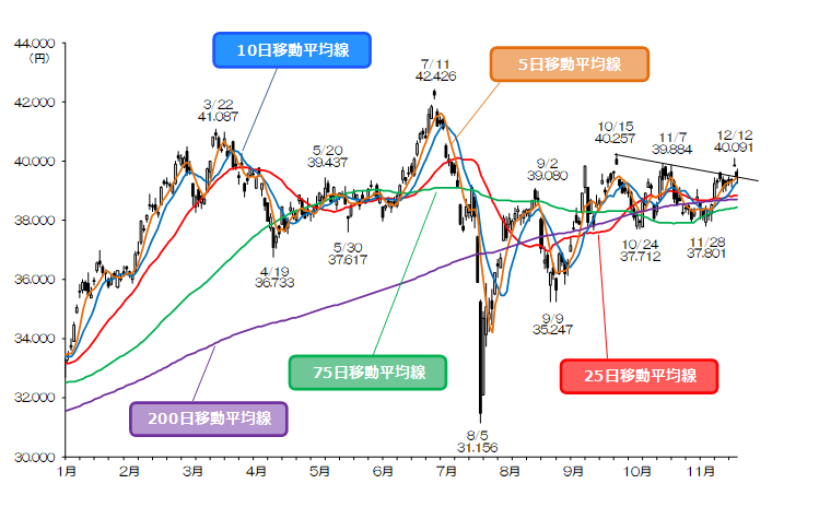 図表1:日経平均株価の日足チャート(2024/1/4-2024/12/13)