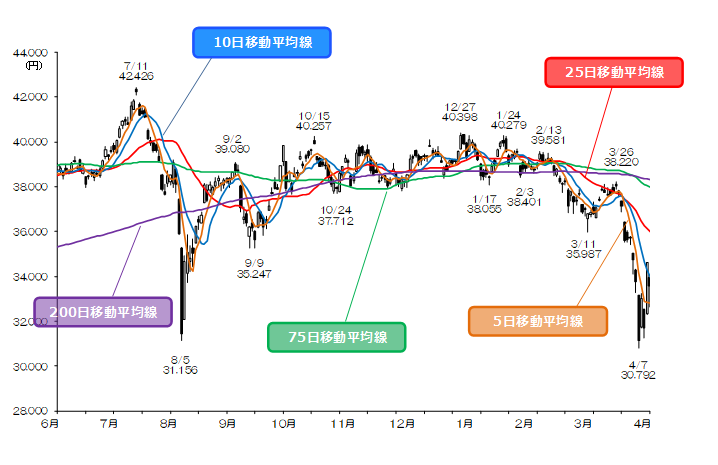 図表1:日経平均株価の日足チャート(2024/6/3-2025/4/11)