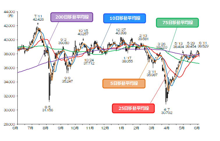 図表1:日経平均株価の日足チャート(2024/6/3-2025/6/13)