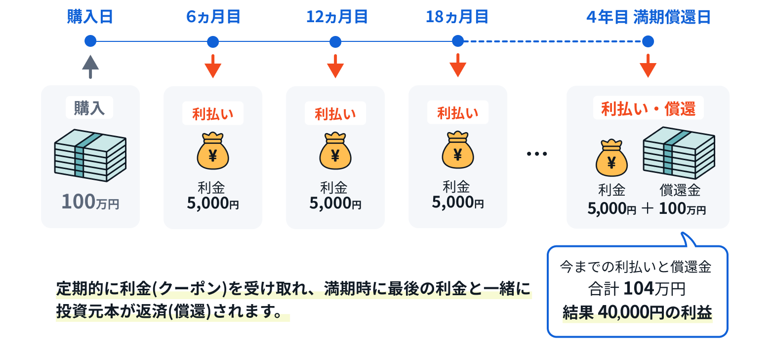 債券は、あらかじめ利払いや償還のスケジュール(運用期間)が決まっていて、一般的な固定利率の債券であれば、利払金額もあらかじめ決まっています。