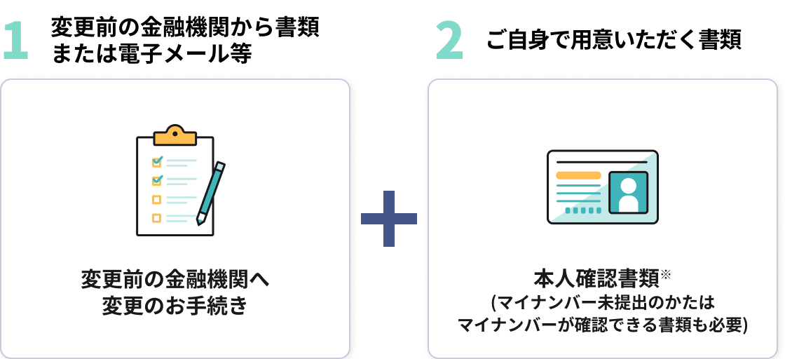 変更前の金融機関から書面を受け取り、SBI証券の画面で必要情報をご入力ください。